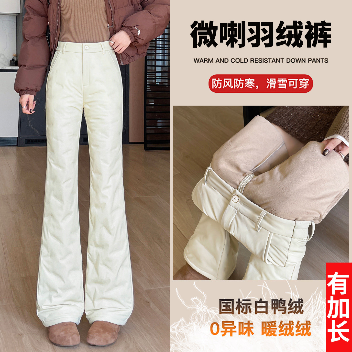 Tall elongated fleece flared down pants for women wear white duck down in winter to protect against cold and warm Northeast ski cotton pants