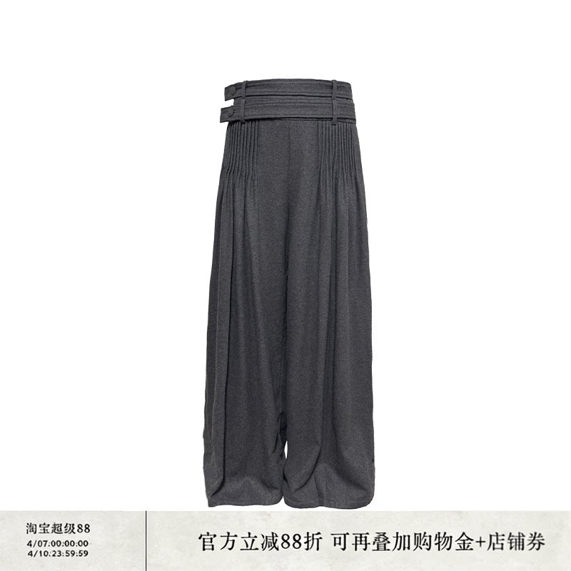 JCAESAR WOOL PANTS double belt toothpick pleated wool trousers wool and cashmere blend straight loose leg
