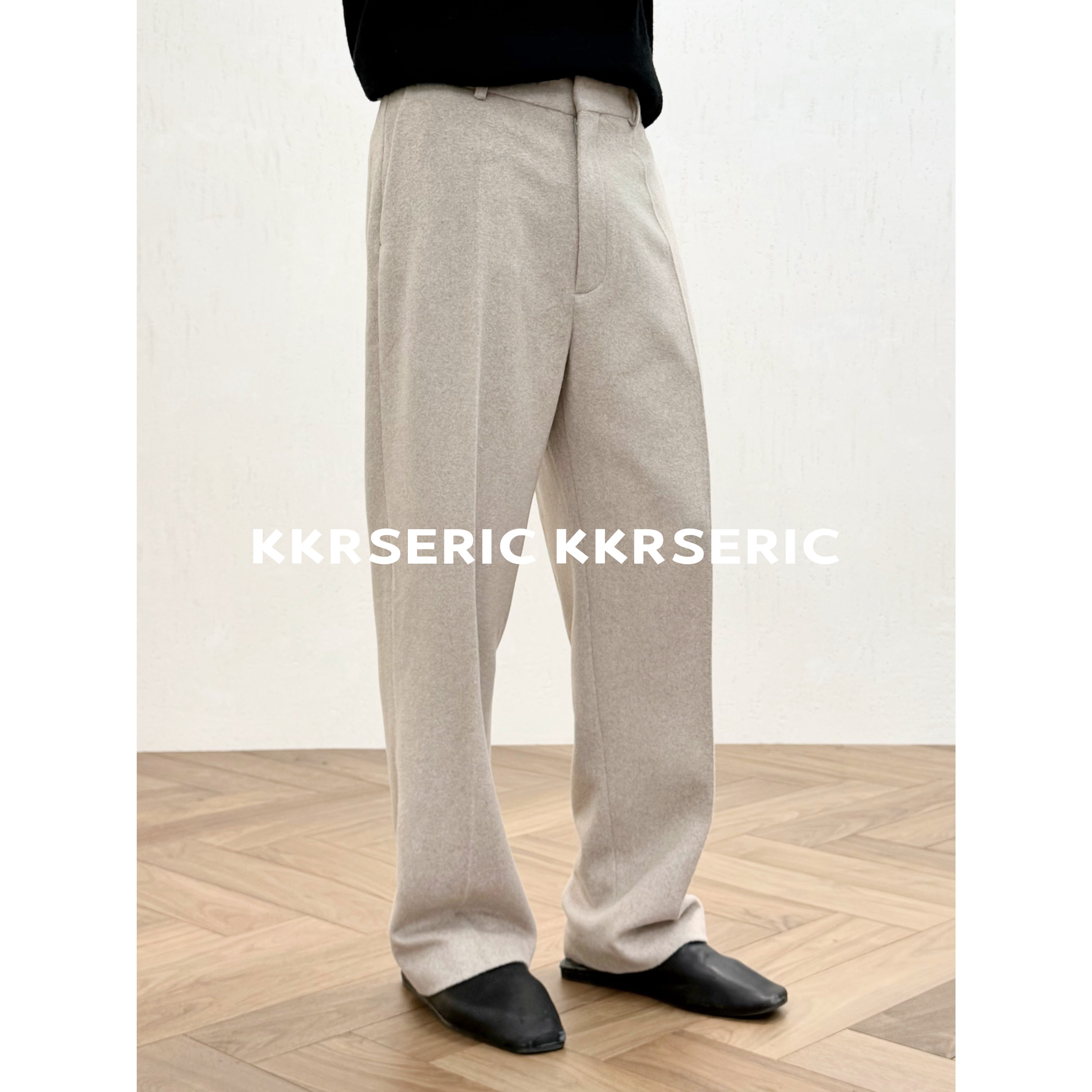 MIXHYHY High-end casual men's trousers men's drape straight suit pants gray versatile trousers for men