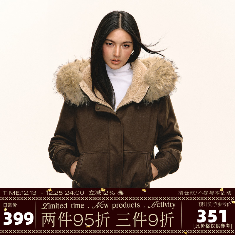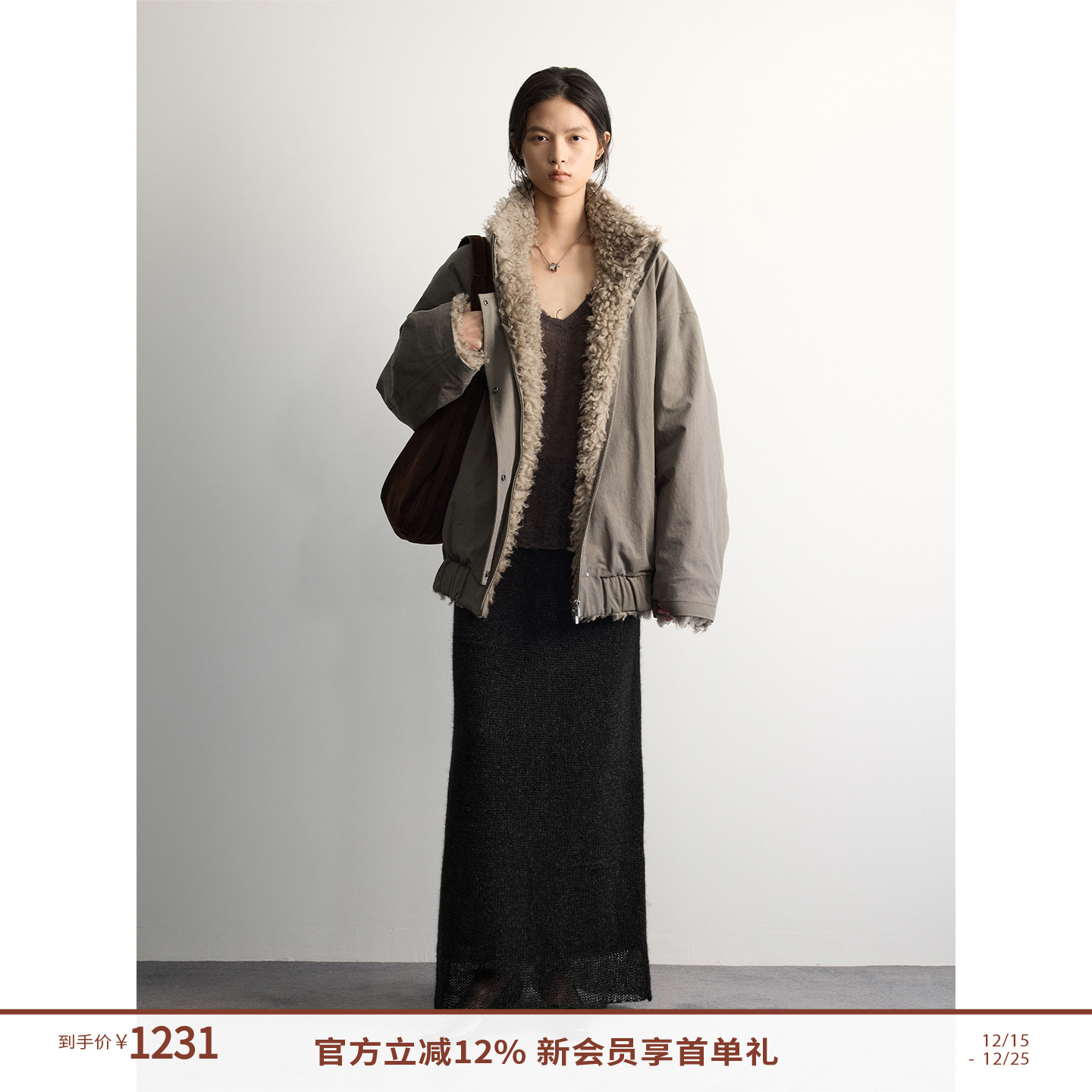 H2AN1 STUDIO Fall and Winter thickened padded jacket hooded lamb wool fur collar cotton jacket padded jacket for women