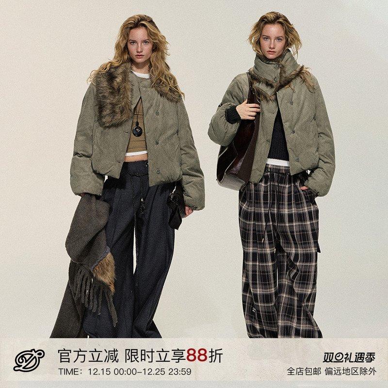 【Di Lieba Wang Churan Same Style】Dpercent|Tea green brown suede fur scarf cotton jacket short coat