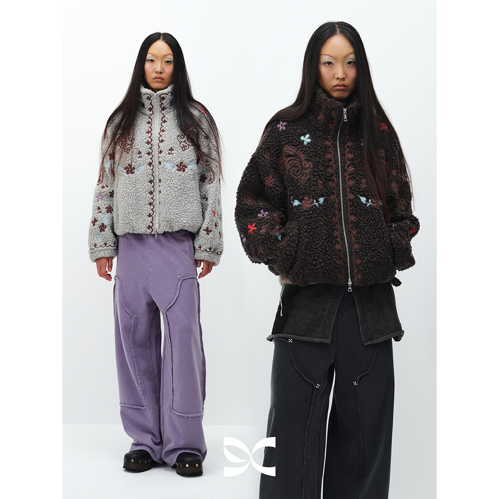 2025 new lambswool stand-up collar short thickened zipper jacket men's and women's winter casual cotton jacket