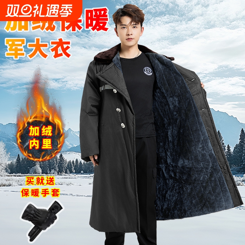 Military coats for men and women in winter, thickened fleece, long labor protection coats, cotton jackets, padded jackets, security guards, cotton black