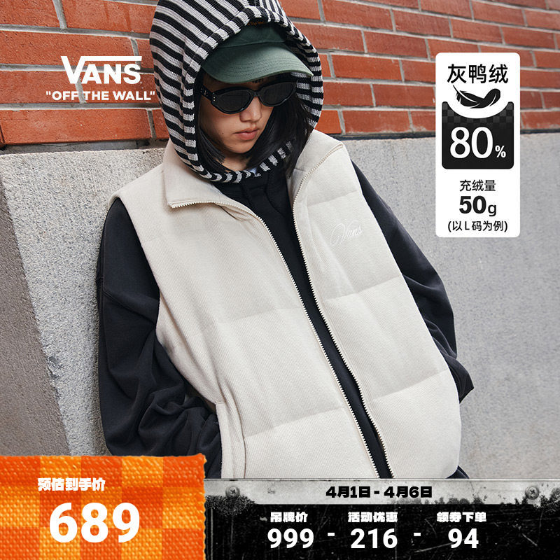 Vans official women's down vest corduroy warm stand-up collar