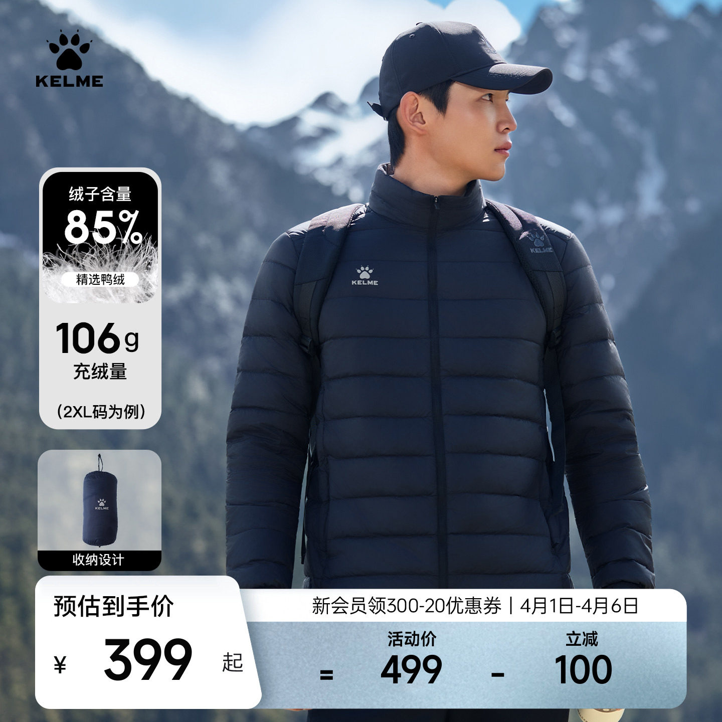 Kalme Lightweight Down Jacket Men's 2025 Fall/Winter Running Sports Training Liner Stand Collar Short Warm Jacket