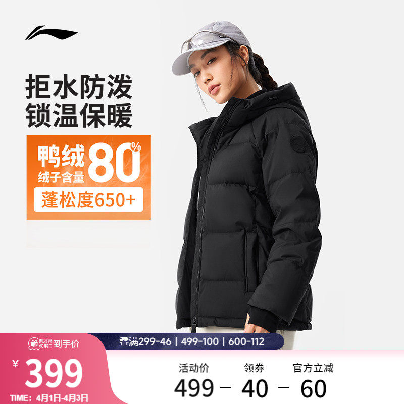 Li Ning down jacket women's winter official new thickened clothes short women's hooded top women's sports coat