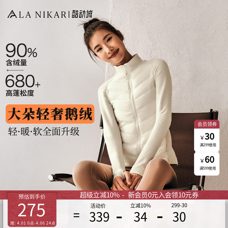 neverme sports down jacket women's light white goose down knitting splicing warm slimming slimming yoga clothes top