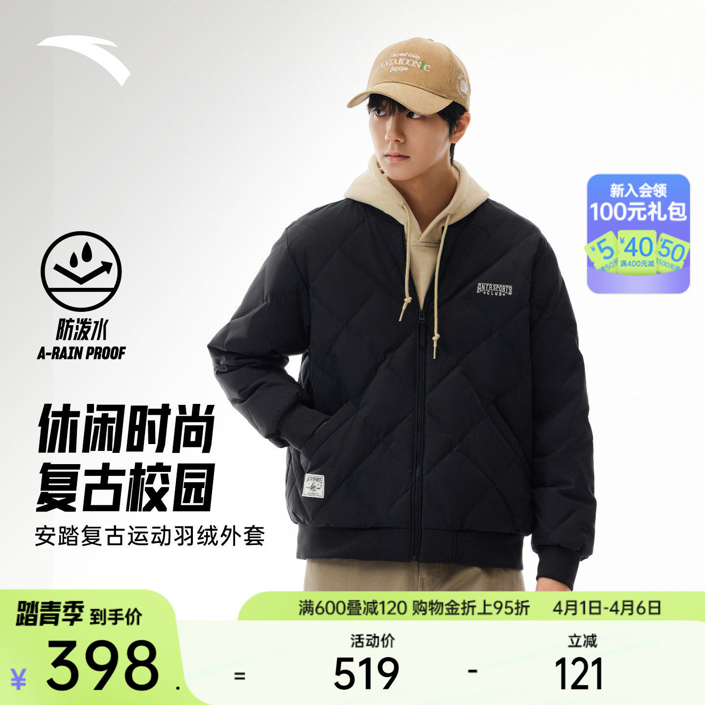 ANTA Short Down Jacket Men's Winter Water-Repellent Baseball Collar Jacket Duck Down Warm Jacket 152548917