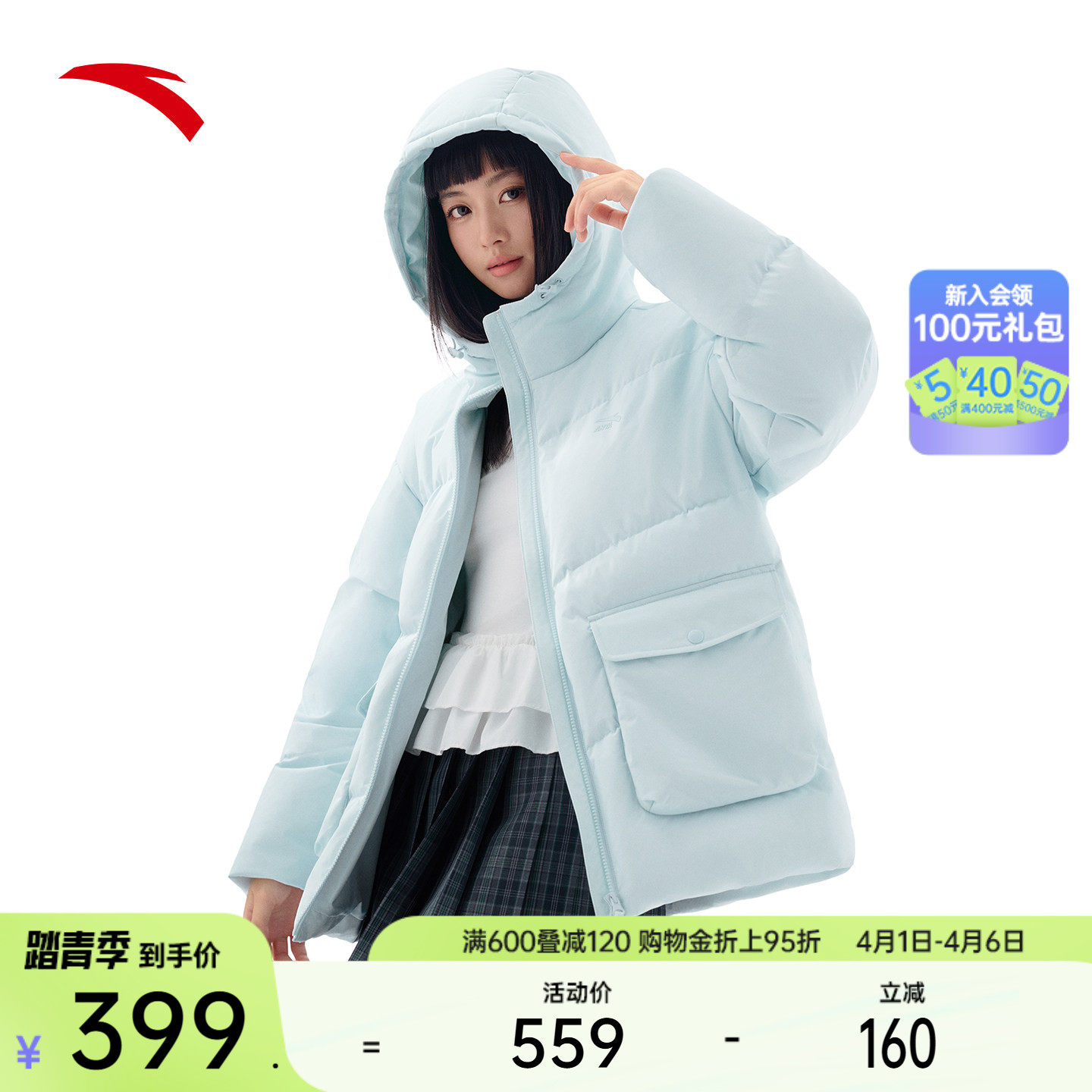 Anta Bread Down丨Water-repellent high fluffy down jacket women's 2025 winter new duck down warm jacket