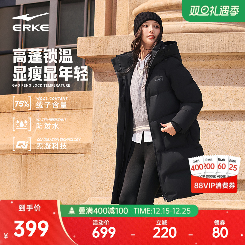 Hongxing Erke long down jacket women's new winter women's mid-length style good-looking cotton jacket black coat jacket