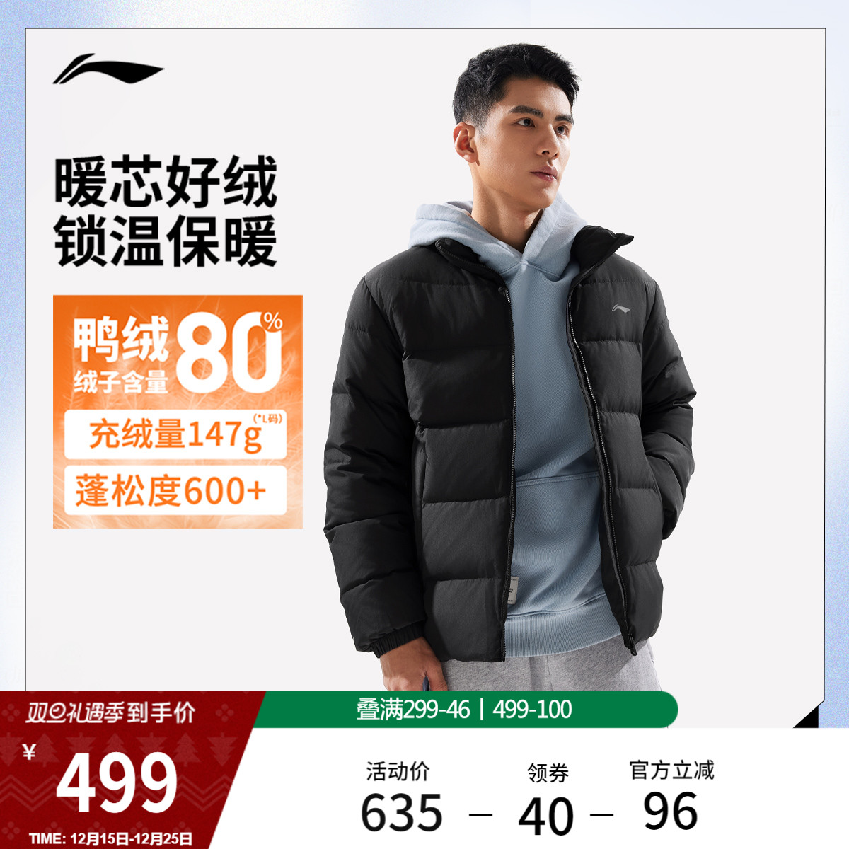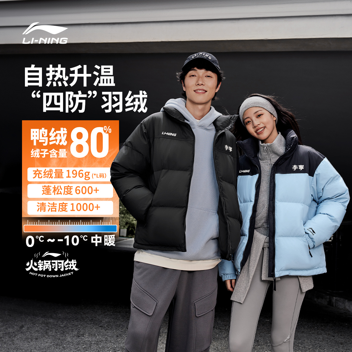 [Shiitake Mushroom Double 12] Li Ning hot pot down jacket, duck down cropped top, couple warm clothes, stand-up collar sports jacket