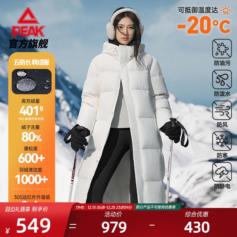 Peak Yuxue Long Down Jacket丨Outdoor Winter New Official Men's Hooded Warm Duck Down Jacket Women's Cotton Jacket