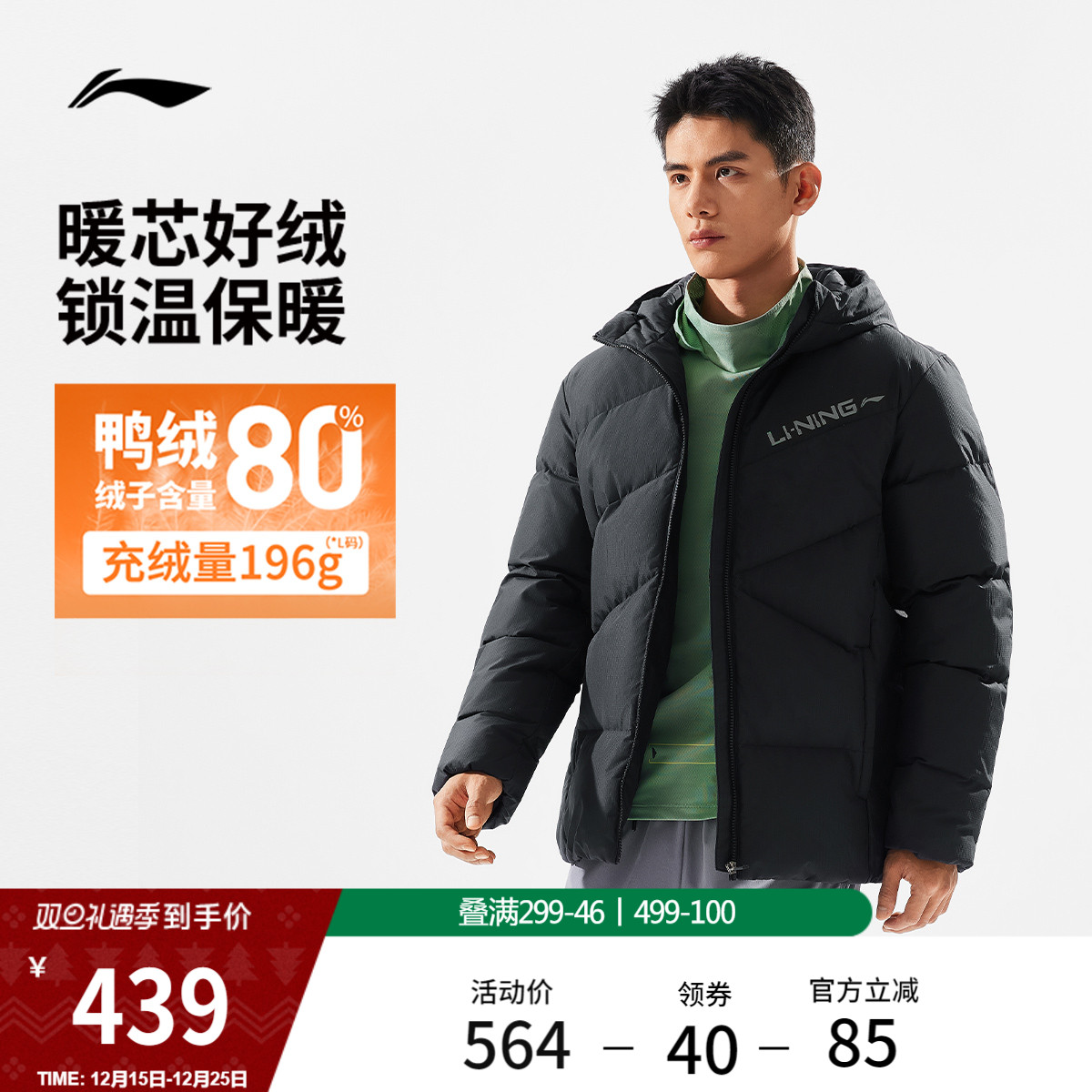 Li Ning short down jacket men's winter 2025 new warm top water-repellent duck down thickened sports jacket