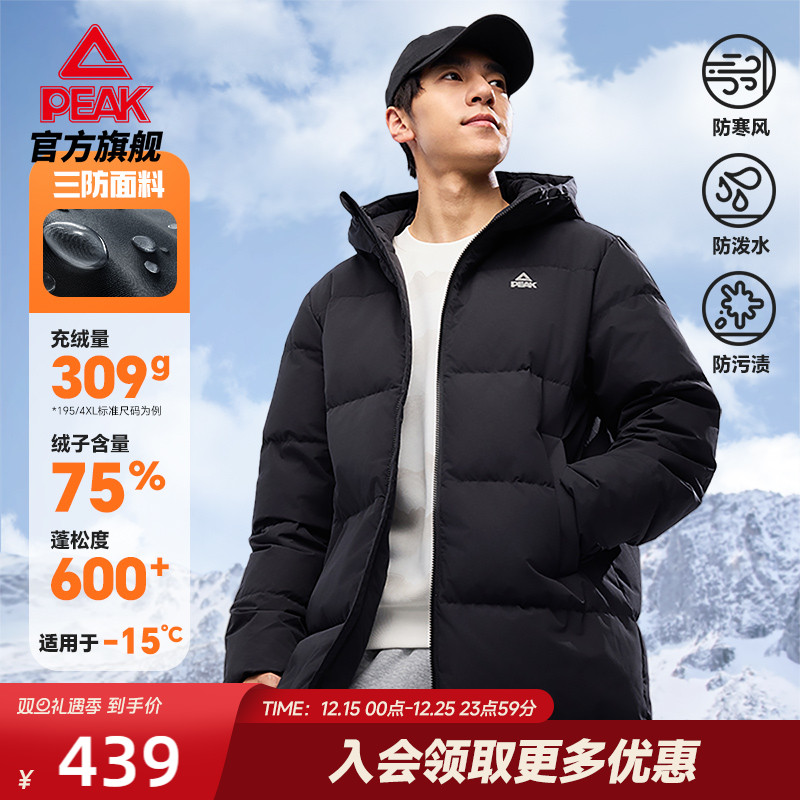 Peak Snow Down Jacket丨Three-repellent long winter new cotton jacket casual men's official genuine sports jacket