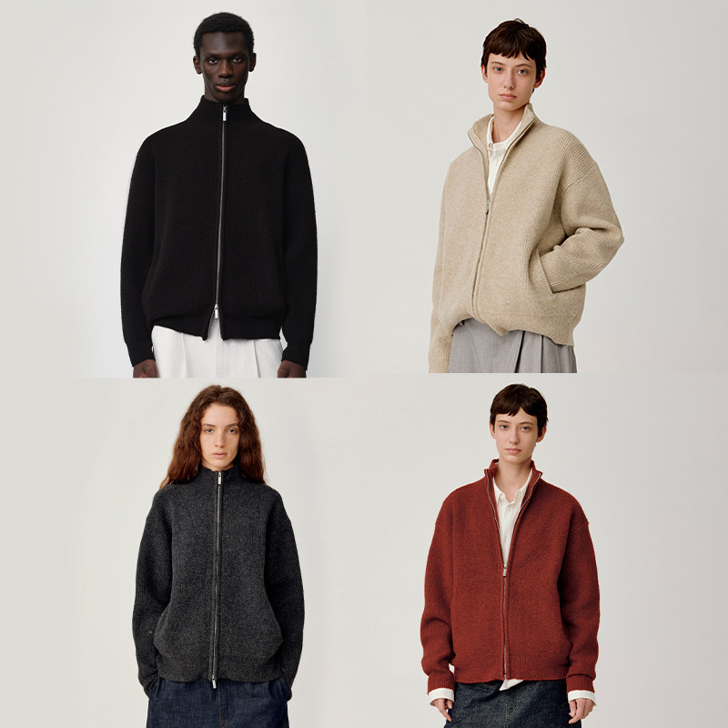 OPICLOTH/OPIC four-color stand-up collar double zipper loose skin-friendly base casual long sleeve cardigan sweater jacket
