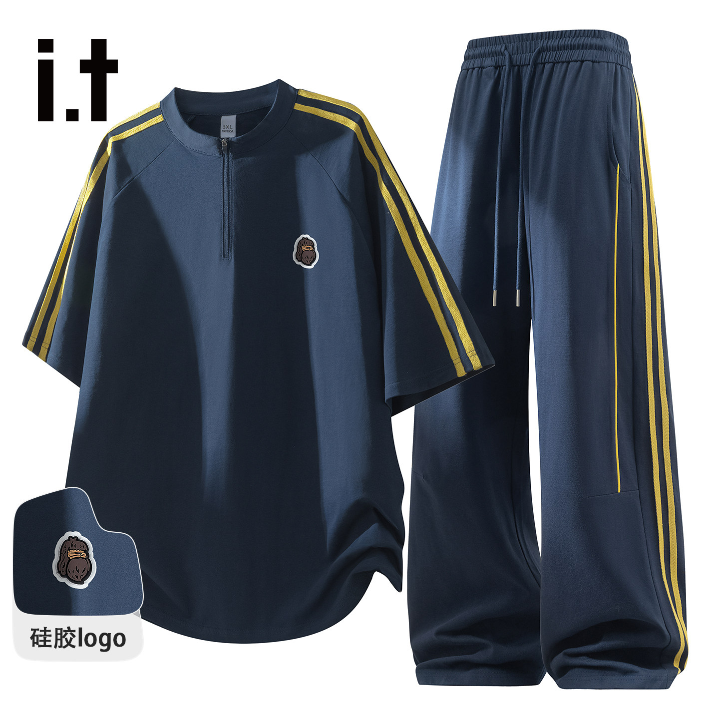 Pull-back sports suit men's spring contrast sweatshirt jacket navy blue straight-leg pants teenagers wear a complete set of Y
