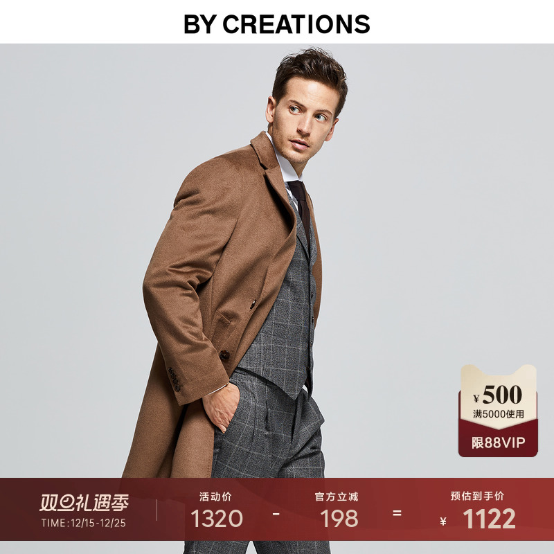 Baipin pure Australian wool Chesterfield camel coat men's midi lapel business woolen coat