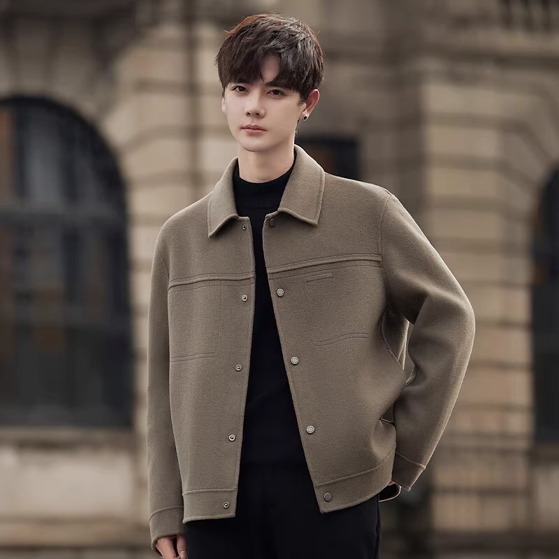 New autumn-winter woolen lapel jacket men's reversible fleece cropped casual tweed jacket men's top trend