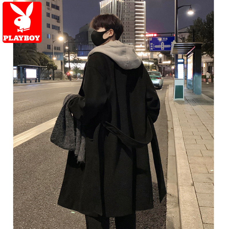 Playboy mid-length woolen coat, men's spring, autumn and winter, Korean version of ruffian trench coat, loose woolen coat, trendy