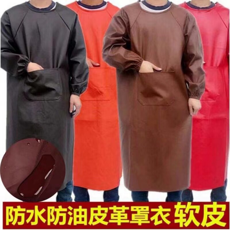 Waterproof and oil-proof extended leather jacket set, men's and women's work clothes, leather aprons, pig killing factory, anti-fouling labor protection coveralls