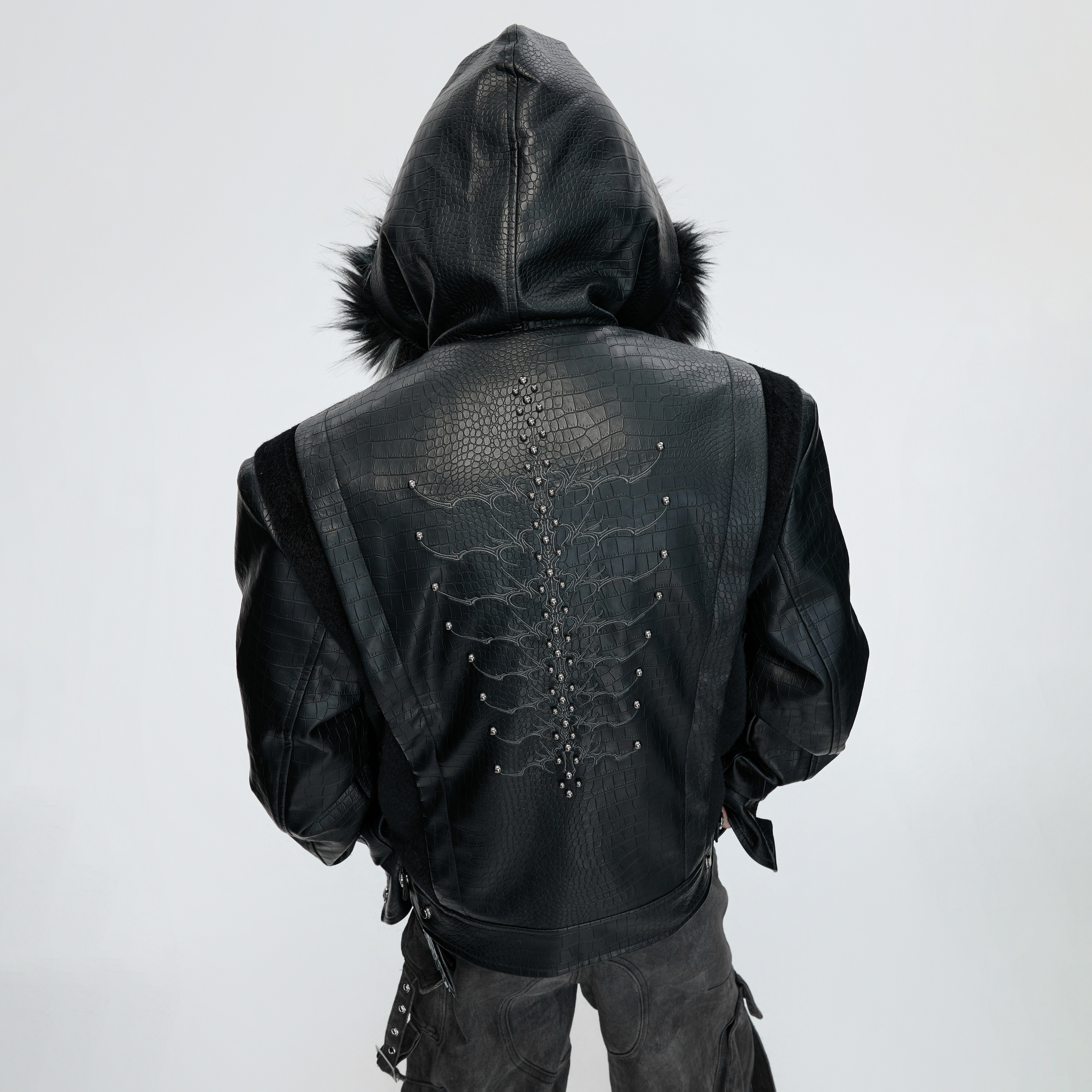 ArguE CulturE Niche Three-dimensional Relief Deconstructed Stand Up Collar Silhouette Jacket Motorcycle Armor Leather Jacket Men
