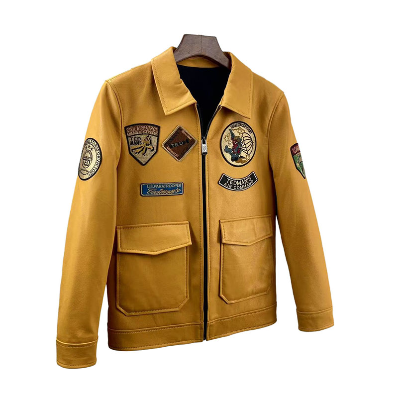 Haining genuine leather jacket, men's goatskin jacket, embroidery, handsome high-end fashion trend, cycling flight leather jacket