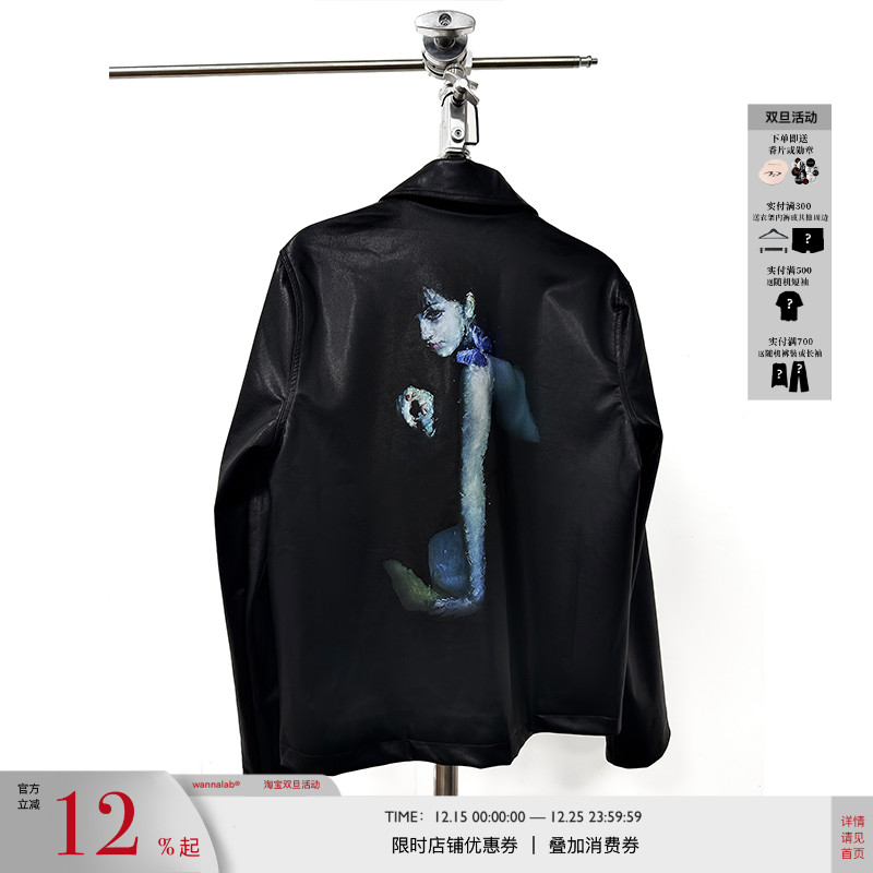 WANNA LAB 25SS reflection butterfly woman portrait ultra-clear ink print texture leather jacket jacket man
