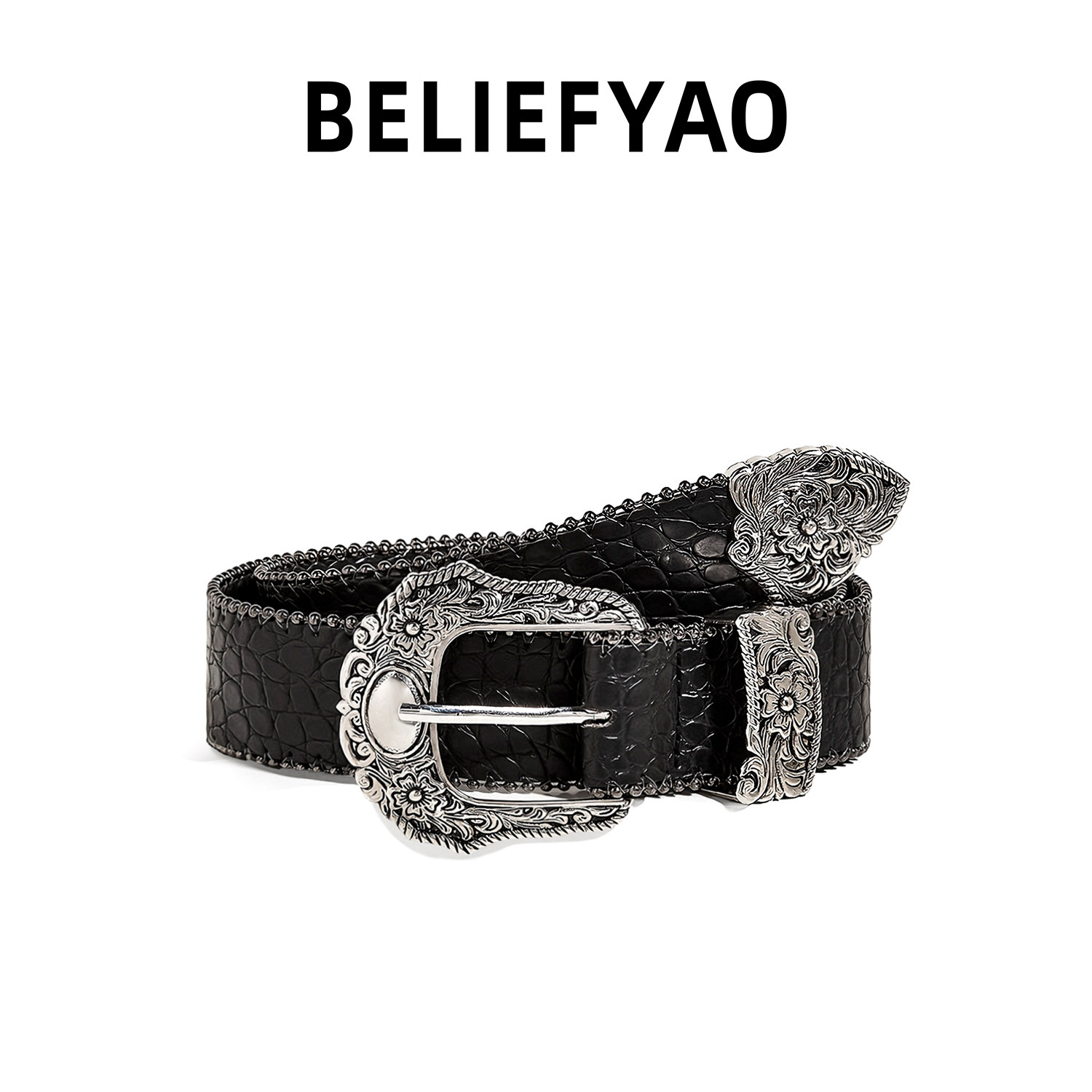BELIEFYAO original crocodile print black belt design niche American retro y2k style belt for men and women