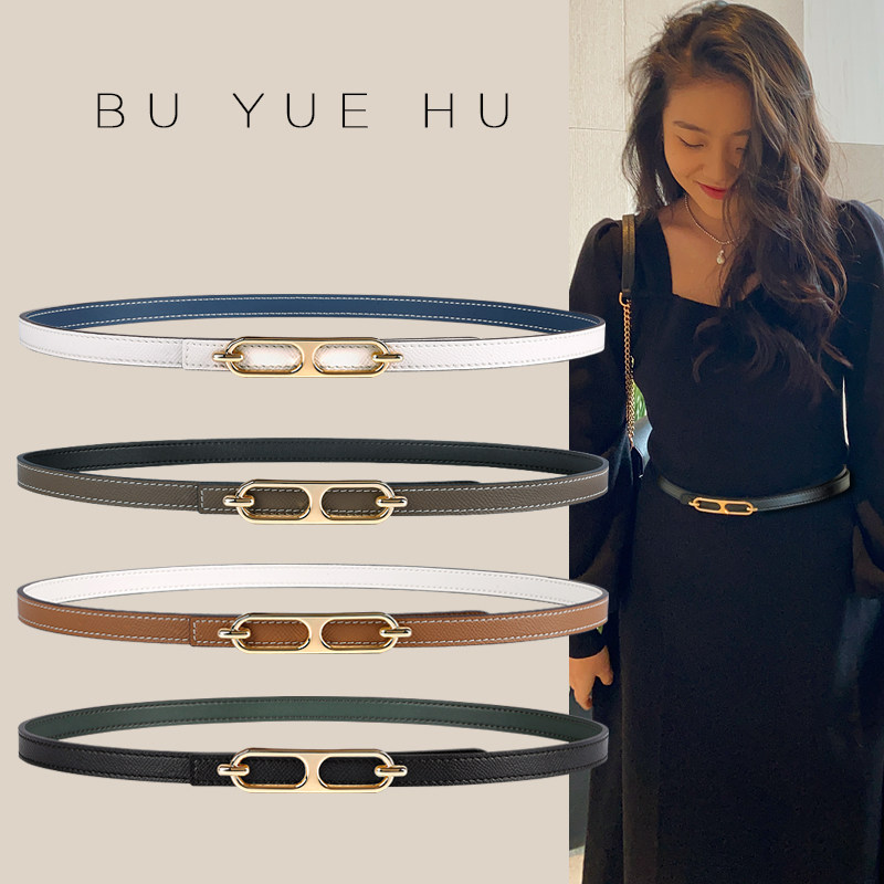 H family kelly thin belt women's leather with coat woolen dress waist decoration pig nose small belt