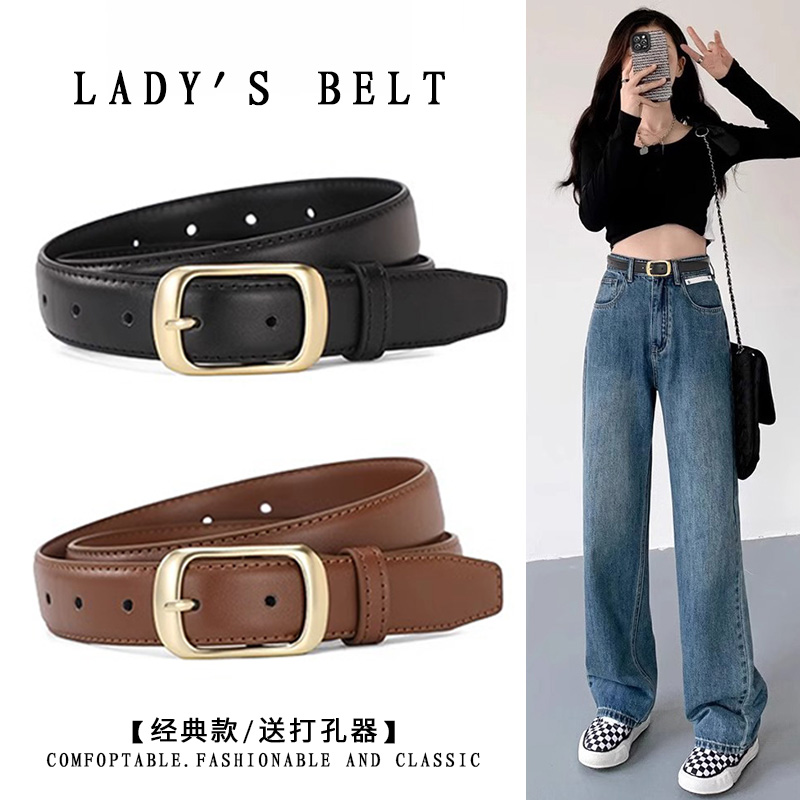 Woodpecker women's belt simple and versatile Korean version 2025 summer new women's model with jeans belt women's ins