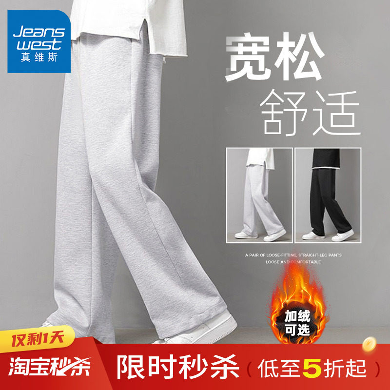 JR Zhenweiss pants men's straight casual sweatpants men's autumn sports men's pants plus fleece gray men's trousers winter