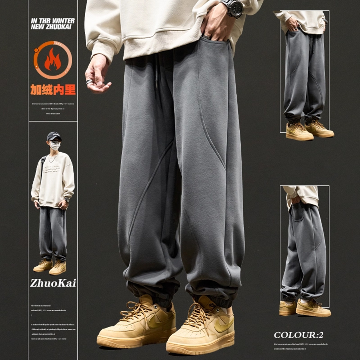 Heavy sweatpants, men's autumn and winter loose slacks, men's long pants, tight sweatpants, fleece pants, winter men's pants