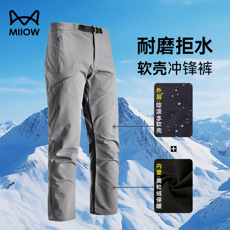 Cat man outdoor three-proof softshell assault pants, men's autumn and winter fleece thickened warm slacks, windproof functional cargo pants