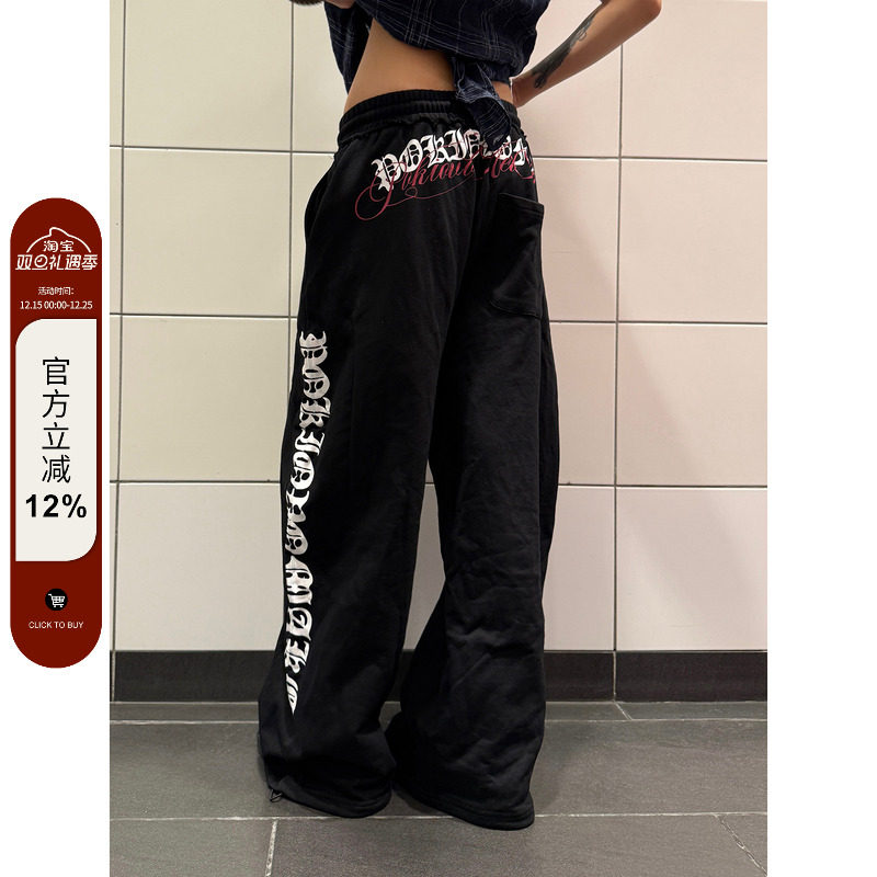 F383 American vintage letter print design drape drawstring slacks men's and women's lazy versatile floor-length pants ins