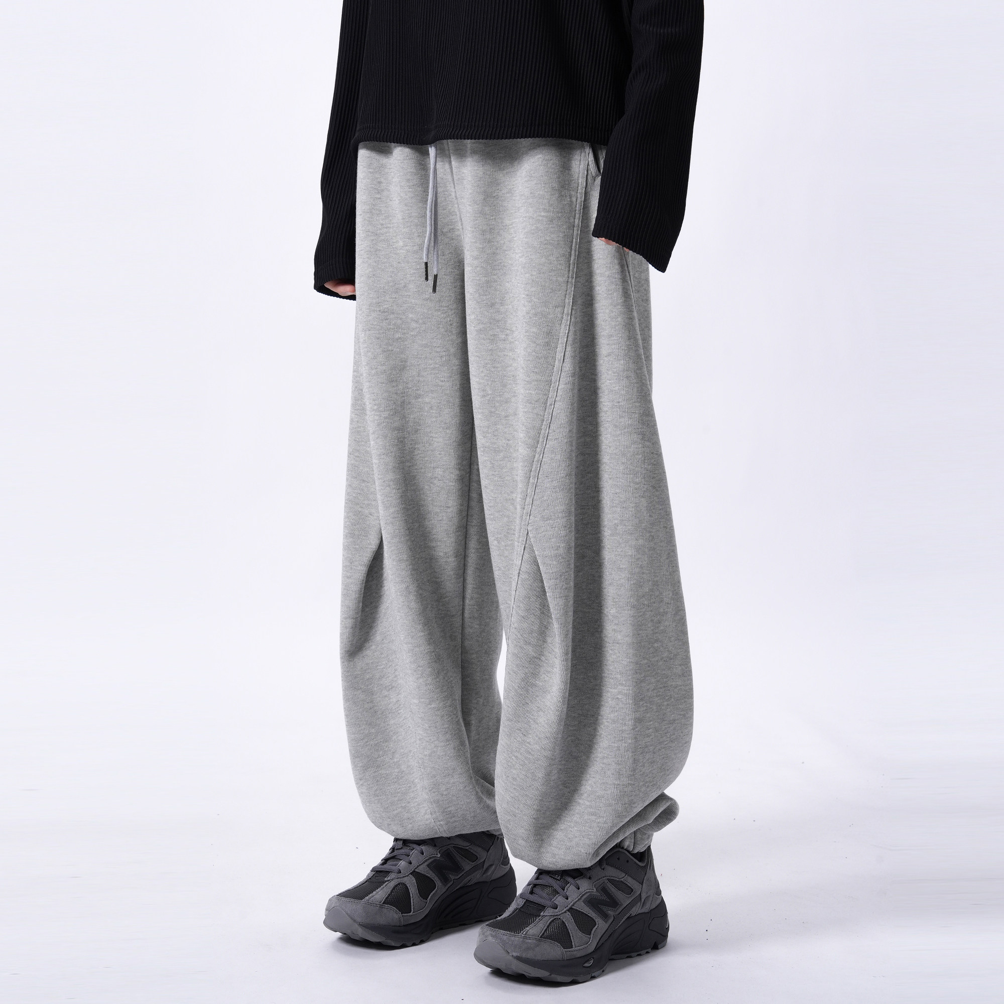 Long-legged uncle, tall elongated sweatpants, loose casual elongated sweatpants, gray cotton corsets, men's pants