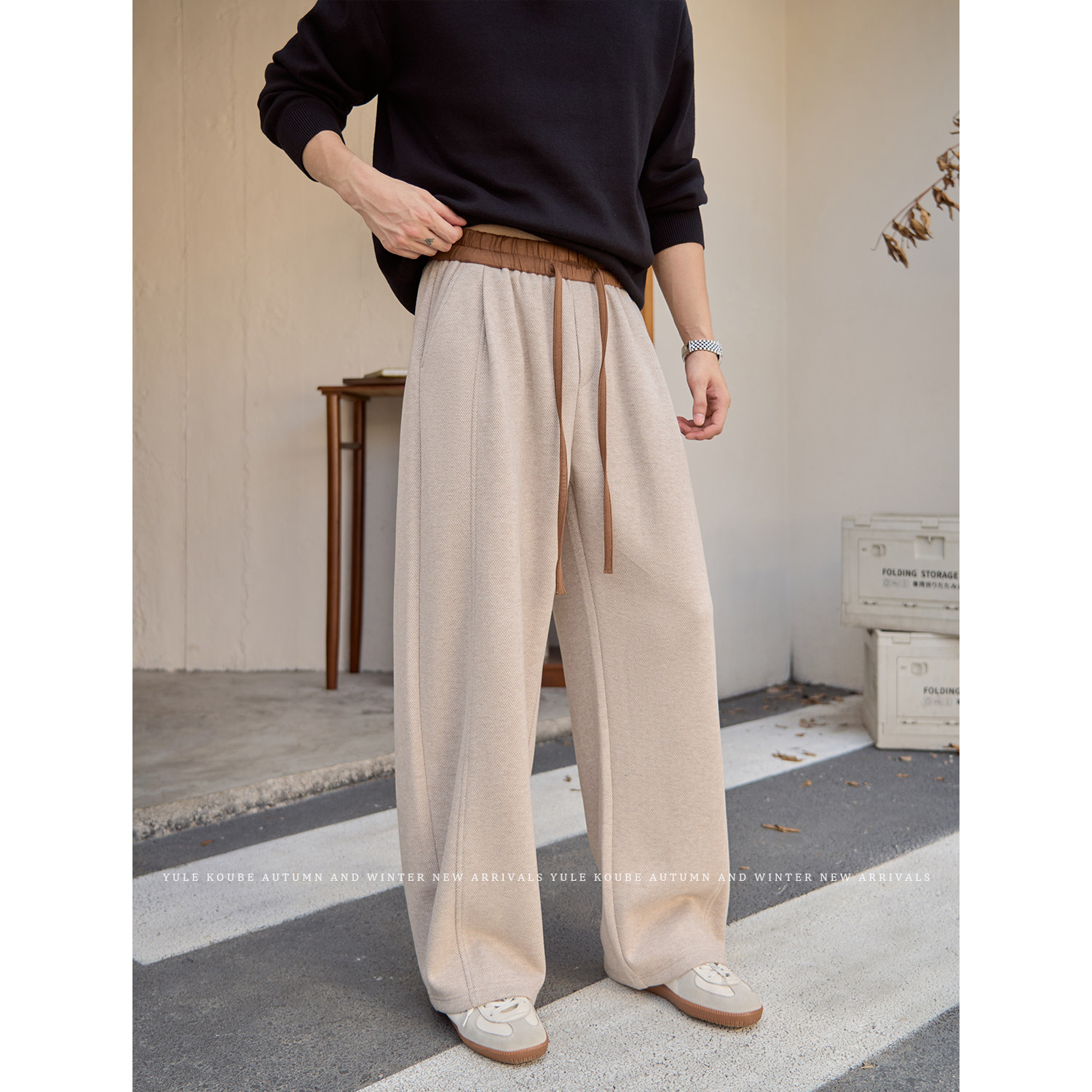 Koube Scimitar Silhouette Herringbone Autumn and Winter High-End Wide-leg Loose Slacks Men's Thickened Knitted Sweatpants