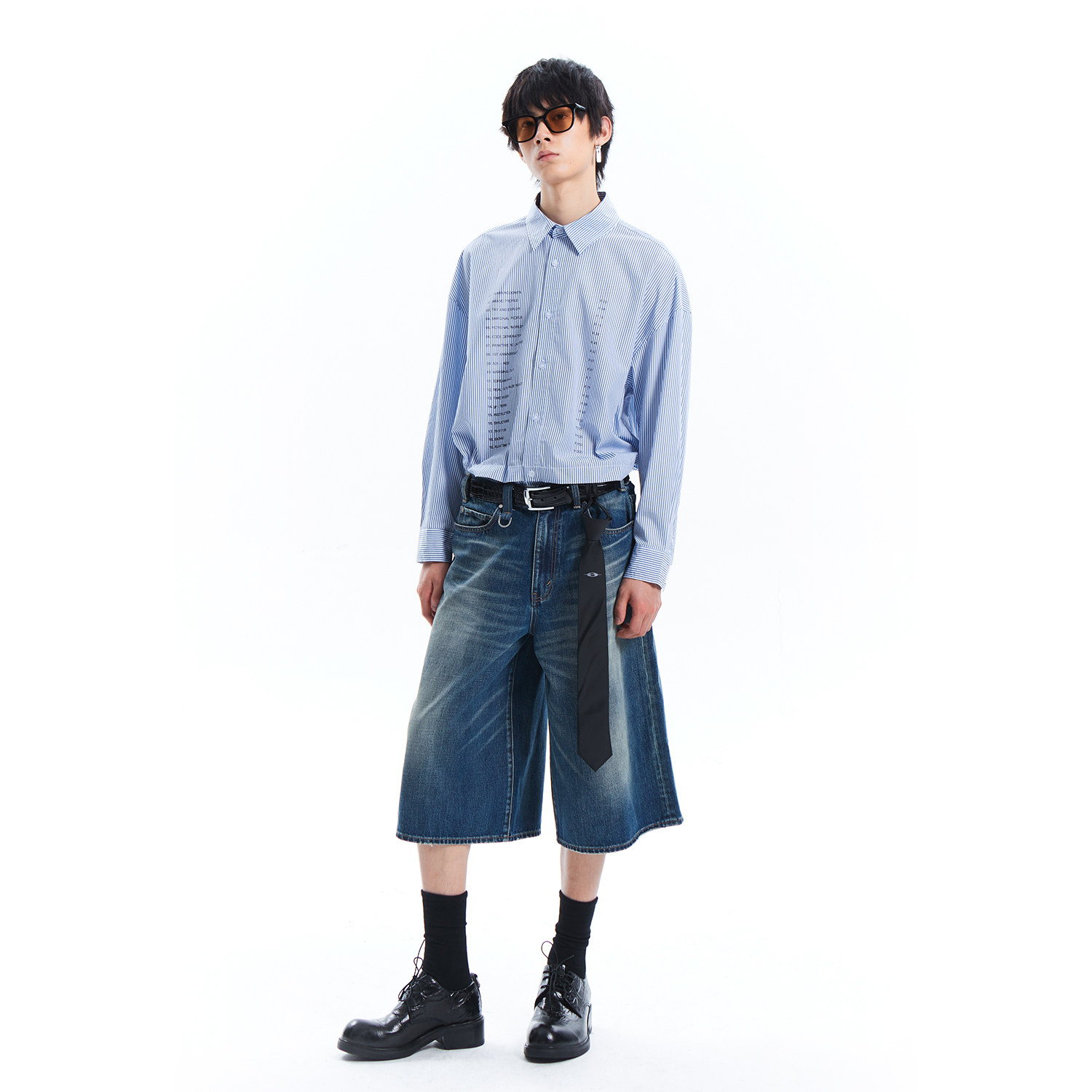 Deng is the same loose silhouette as the star, washed vintage distressed cropped denim shorts TERRAINCOGNITA