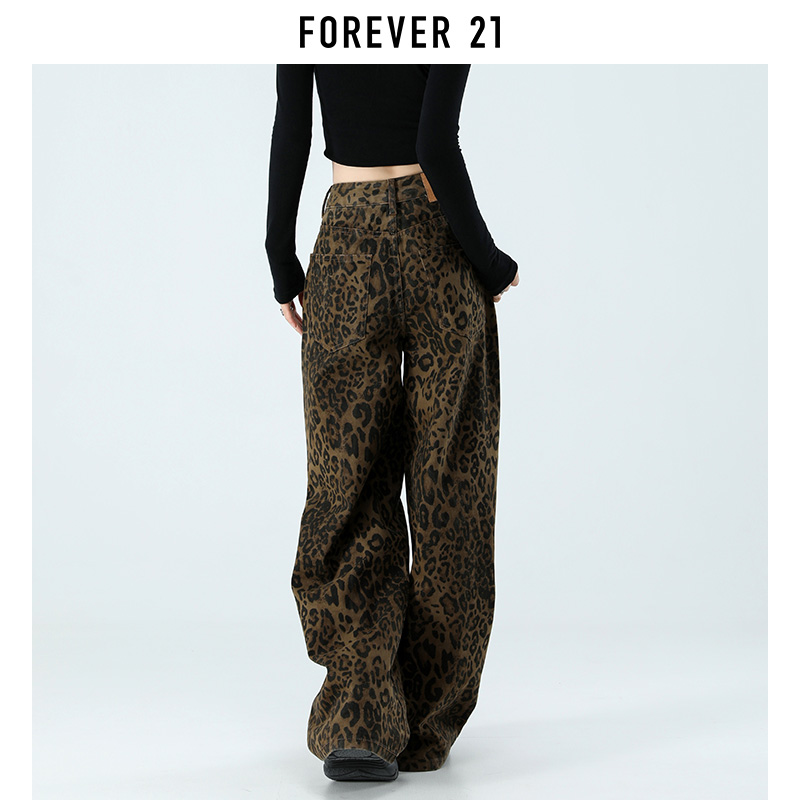 Forever 21 American leopard print fleece wide-leg jeans women's winter high-waisted slimming loose straight-leg floor-length pants