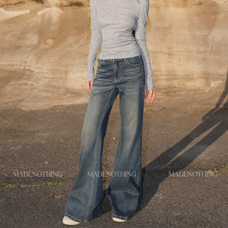 MADE NOTHING MR012 retro high-end Flare stretch wash mid-rise slightly flared wide-leg jeans for women