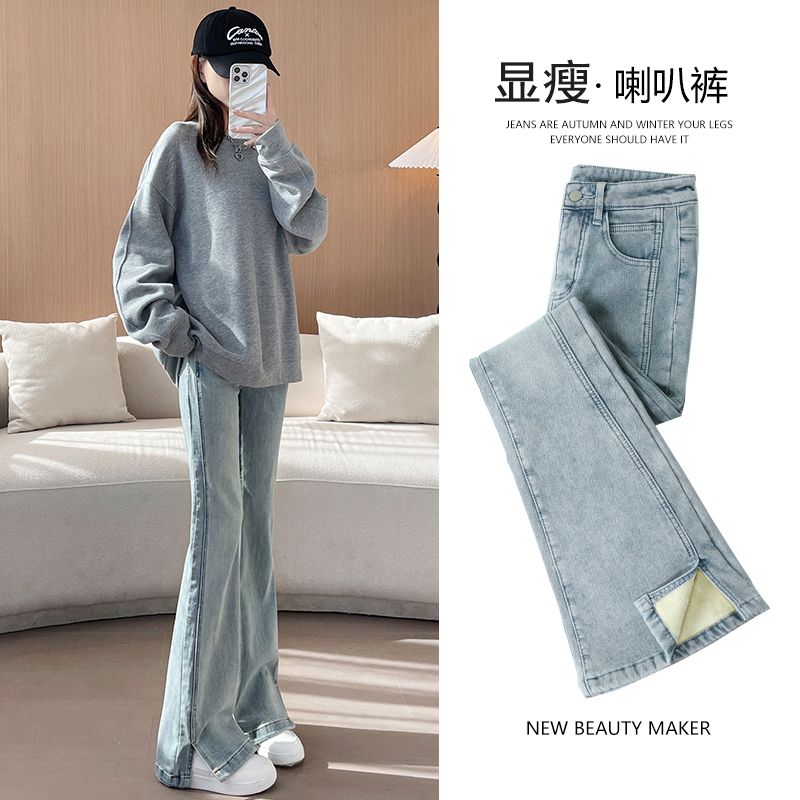 Slit fleece flared pants women's fall 2025 new high-waisted explosive light-colored stretch bootcut jeans