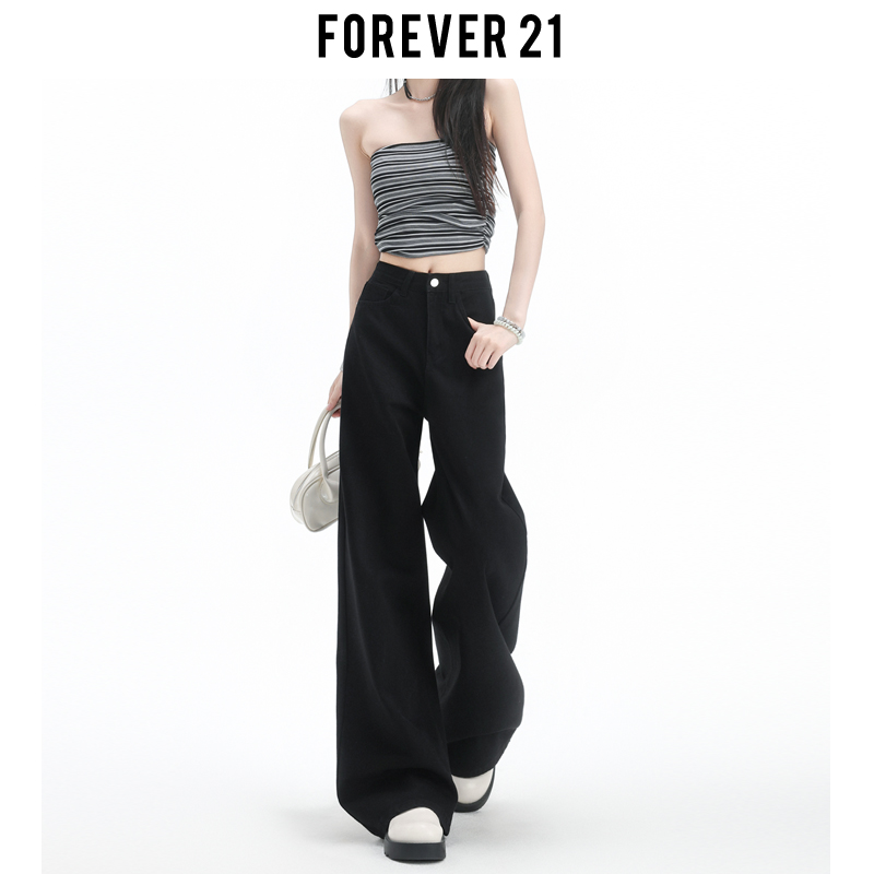 Forever 21 design black high-waisted wide-leg jeans women's pear-shaped body loose drape straight-leg pants