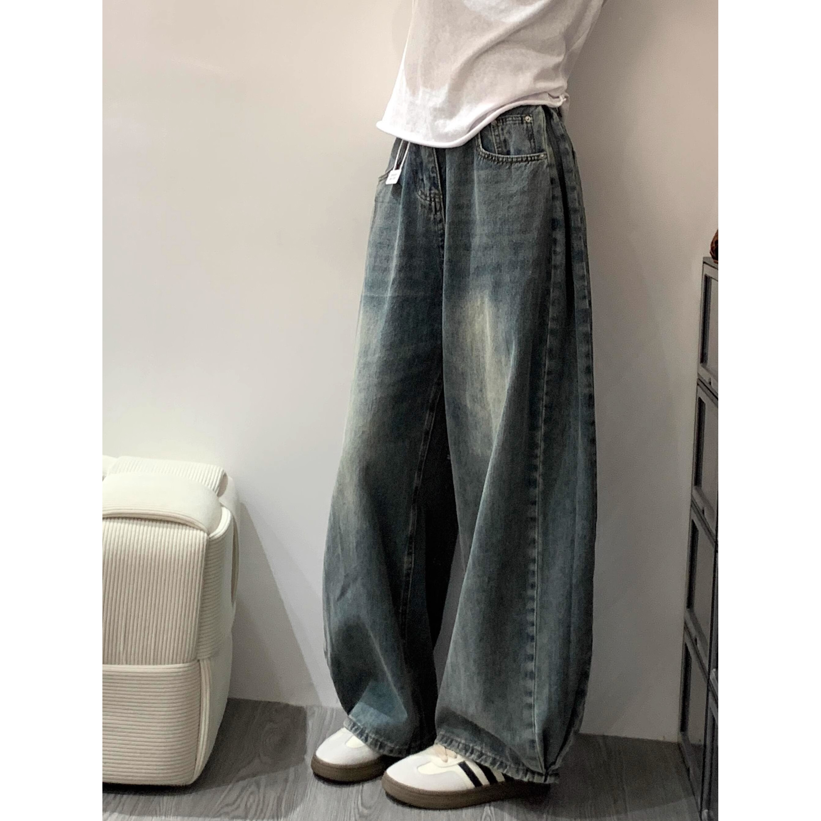 Petite fleece cutlass jeans American vintage wide-leg pants high-waisted sickle slacks Thickened banana pants for women