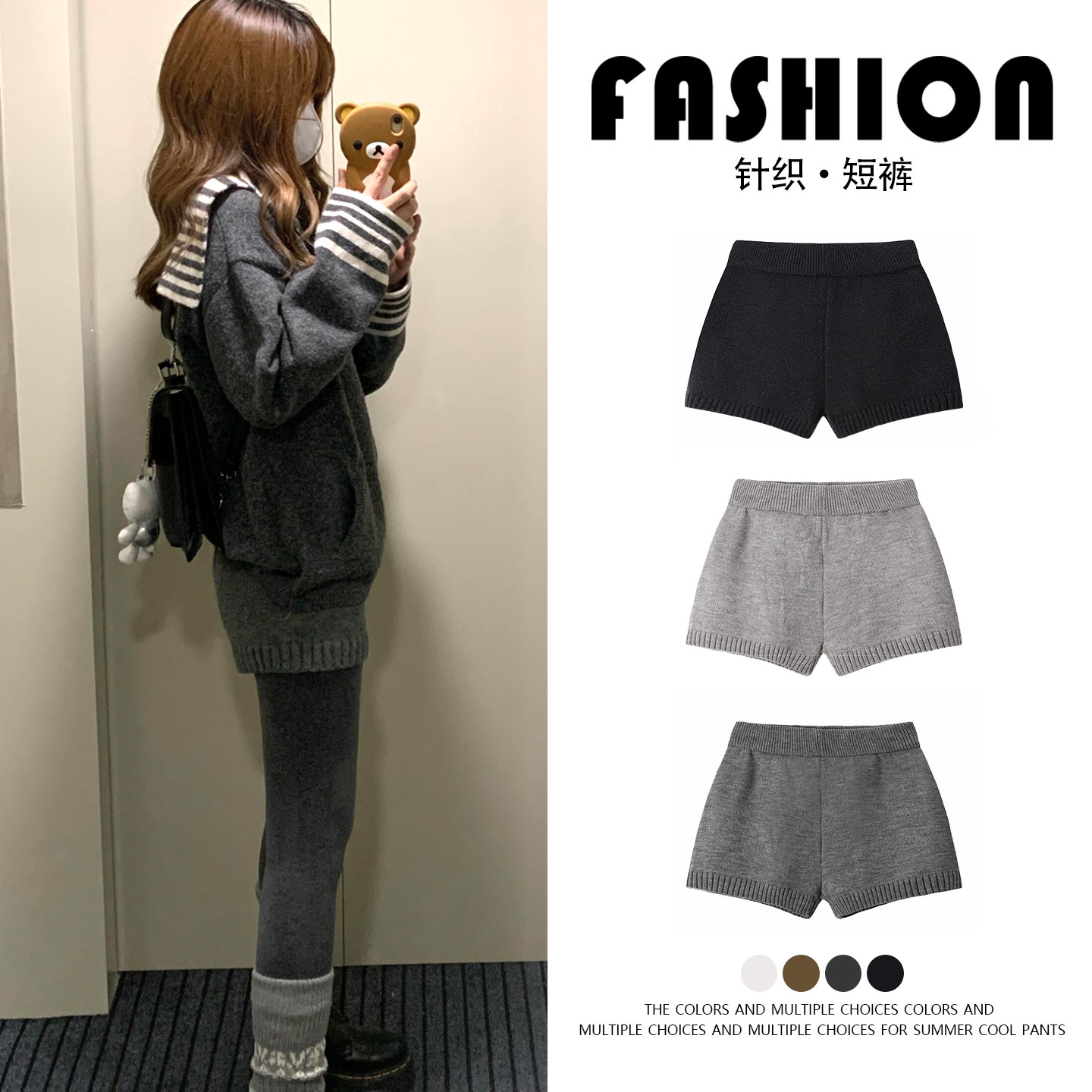 Dark gray shorts women's 2025 new autumn and winter knitted small man slimming and wearing hot girl casual simple sweaters and pants