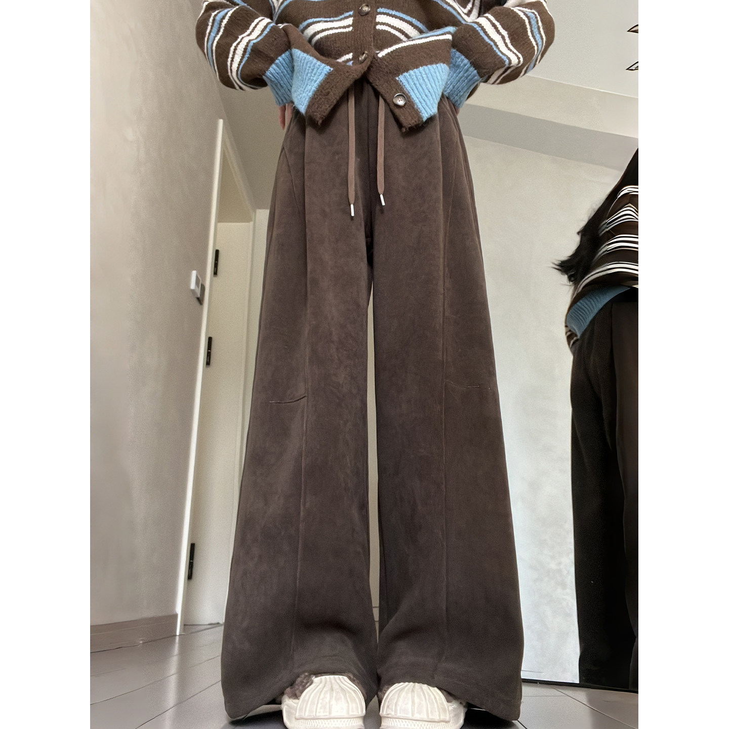 Wide-leg pants, women's winter fleece thickened sweatpants, narrow straight draped pants, lambswool fleece, windproof cotton pants