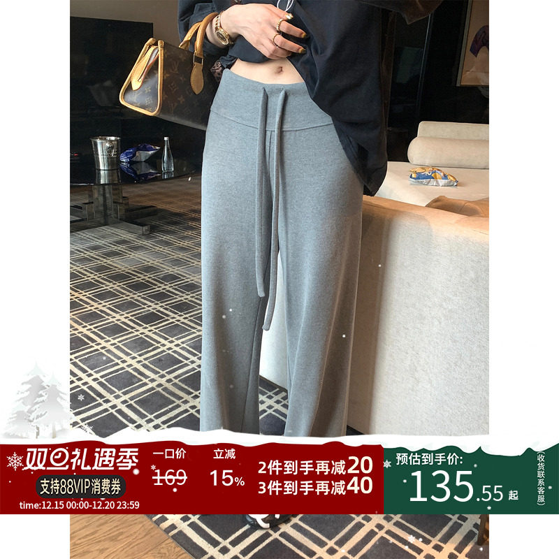 Ouyang drawstring drape, wide-leg pants, women's pants, autumn and winter petite trousers, slacks, sweatpants, winter sweatpants, winter sweatpants