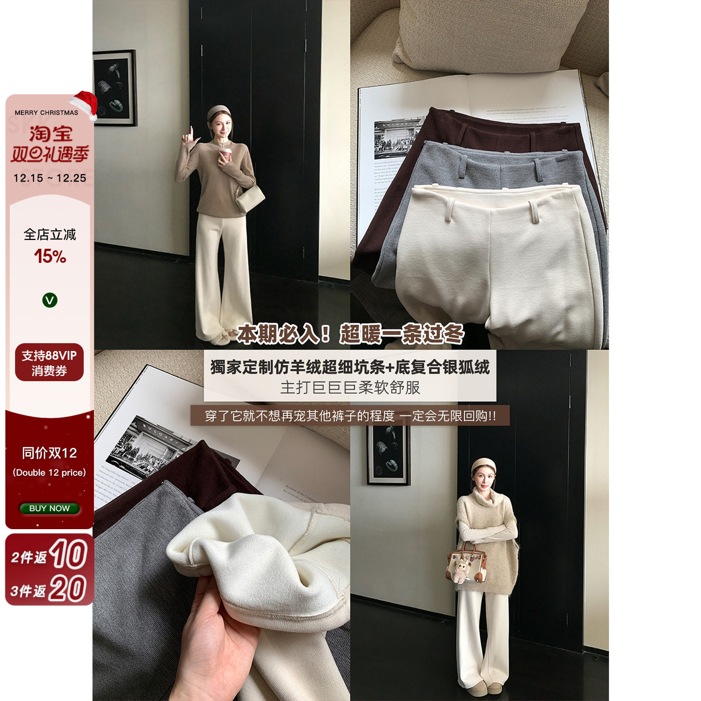White narrow drape wide-leg pants women's 2025 autumn and winter fleece high-waisted acetate wool straight mask glutinous rice pants