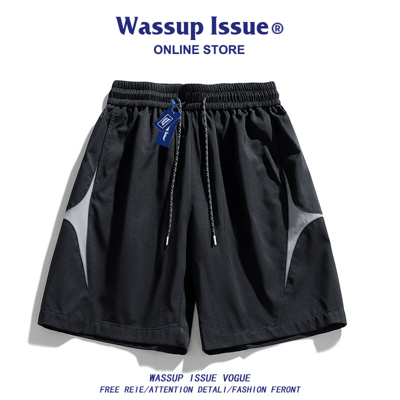 WASSUP ISSUE American ice silk sports shorts men's style wears summer loose casual workwear cropped pants for men