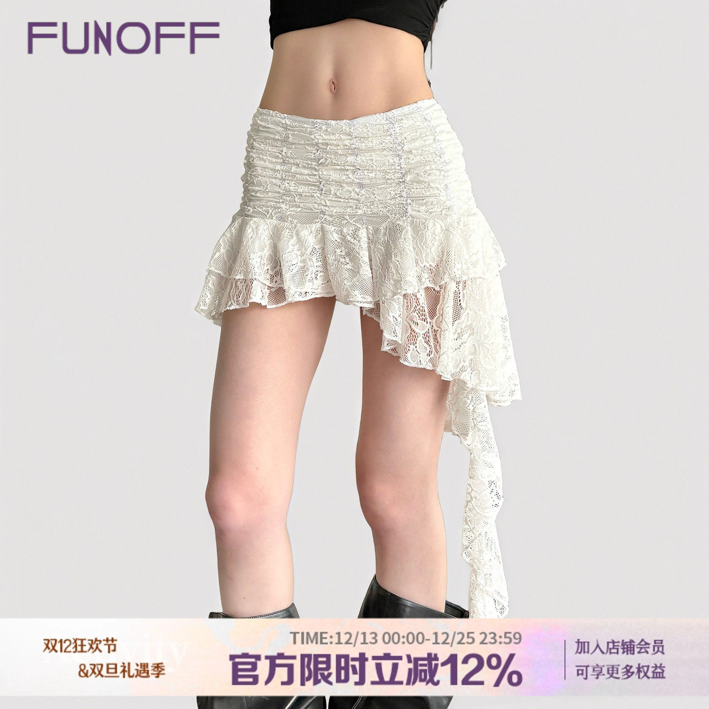 FUNOFF French vintage white lace irregular streamer skirt wandering style sexy cake short skirt summer