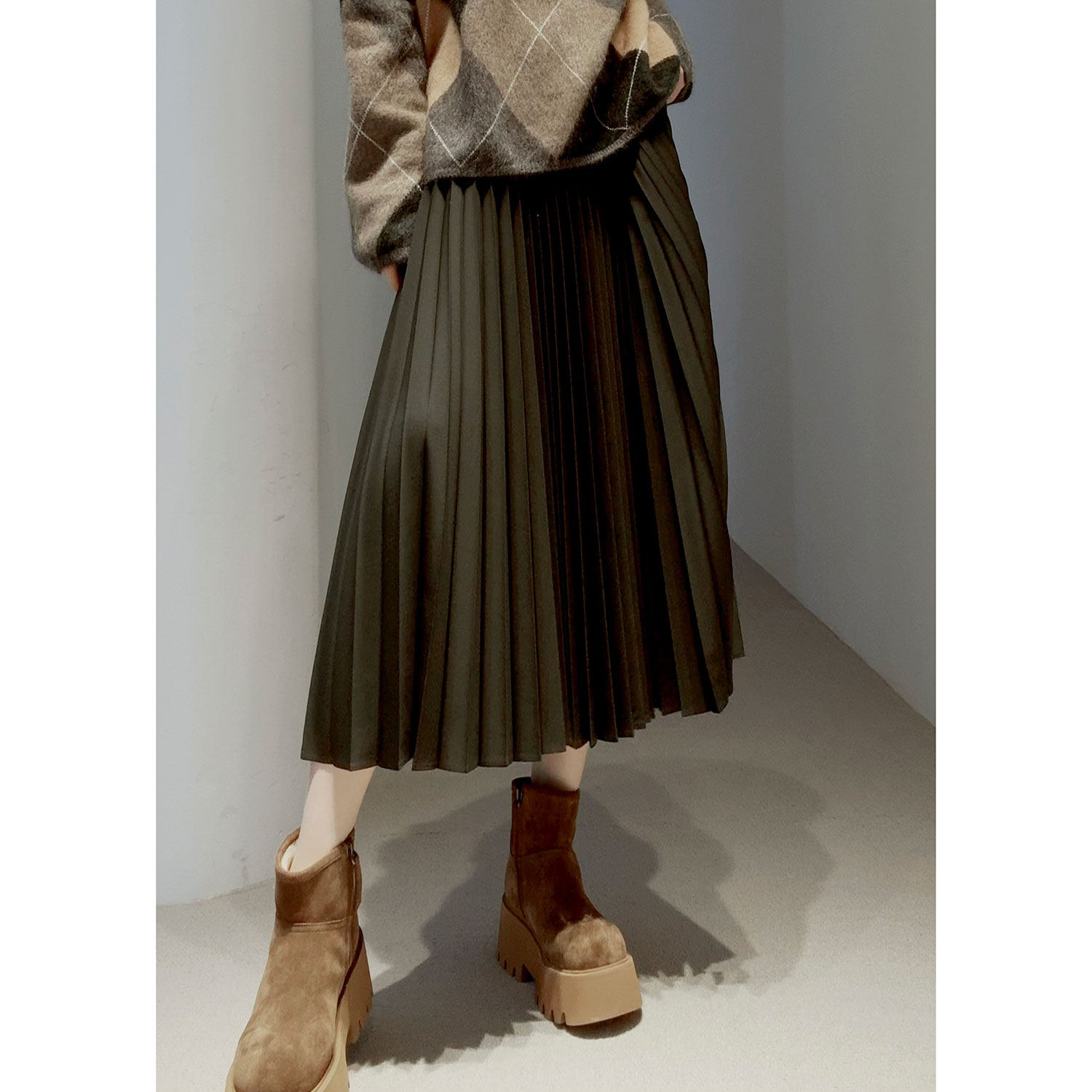 25 winter ~ must-enter! Juxian's slim [*same style/wool stretch/washable] pleated/mid-length skirt