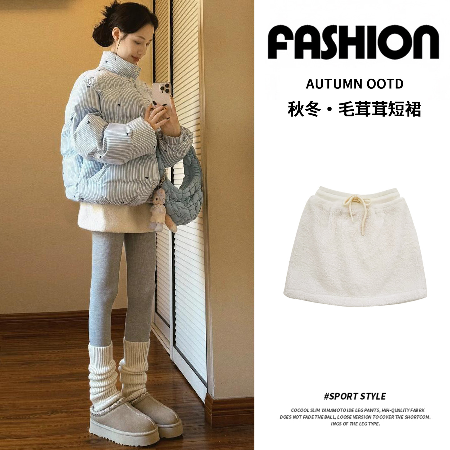 Off-white lamb plush skirt women's autumn and winter 2025 new high-waisted small temperament A-line hip-hugging skirt
